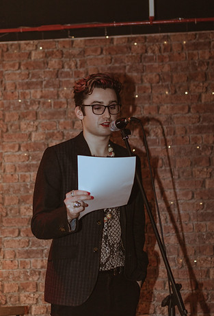 I've been performing poetry live for over six years, doing various featured sets and open mics across the UK. My poetry has been published in the Manchester Anthology for New Writing and Under The Fable, and my poem 'A Bang Average Love Poem' was shortlisted for the Wergle Flomp Humour Poetry Competition.